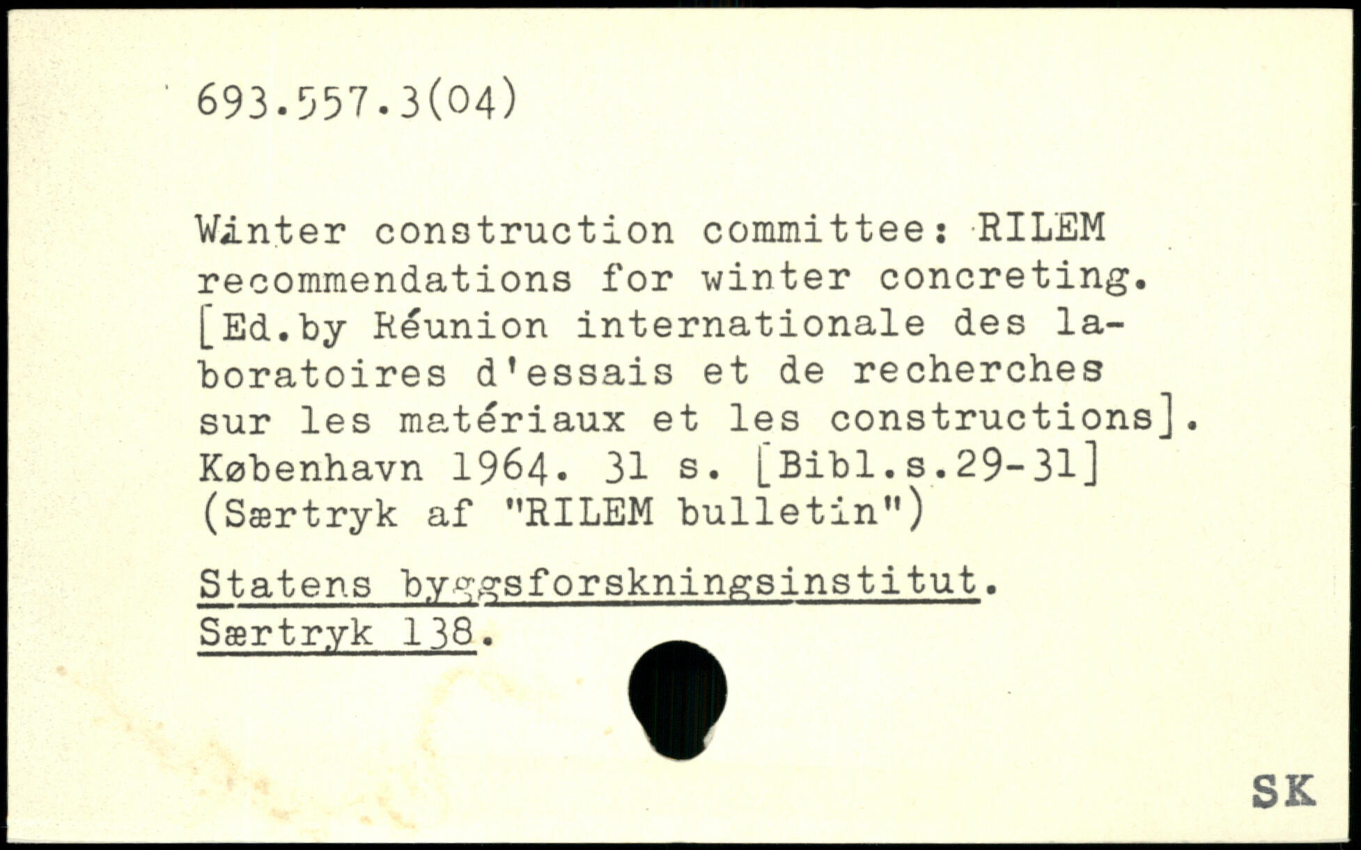 Vinter construction committee: RILEM recommendations for winter concreting. [Ed.by Reunion internationale des laboratoires d'essais et de recherches sur les matériaux et les constructionsJ.