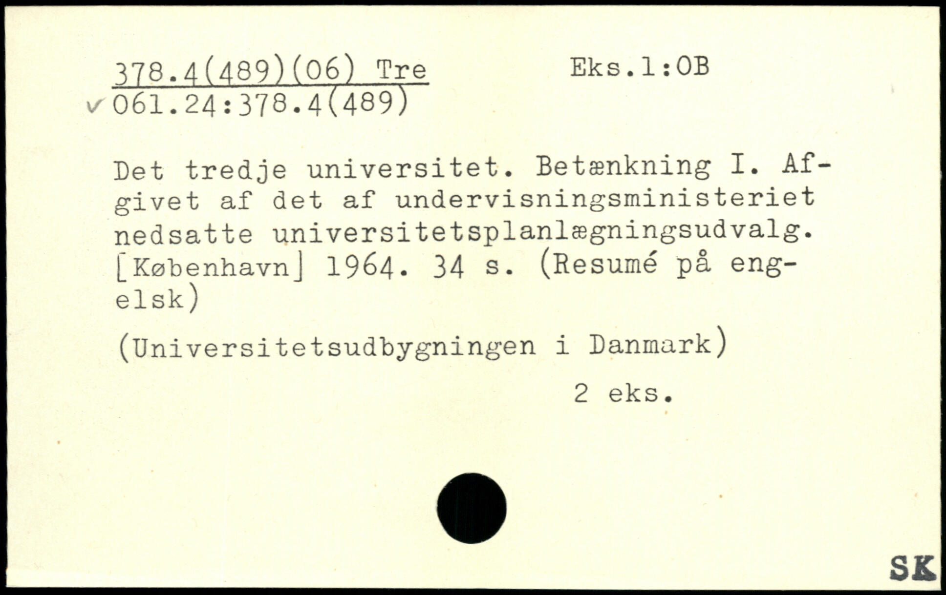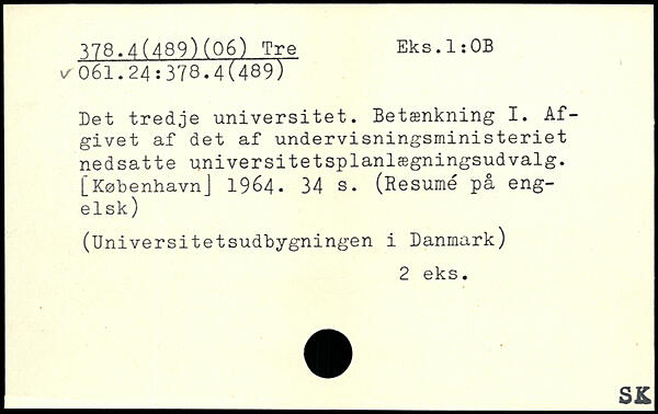 Det tredje universitet. Betænkning I. Afgivet af det af undervisningsministeriet nedsatte universitetsplanlægningsudvalg.