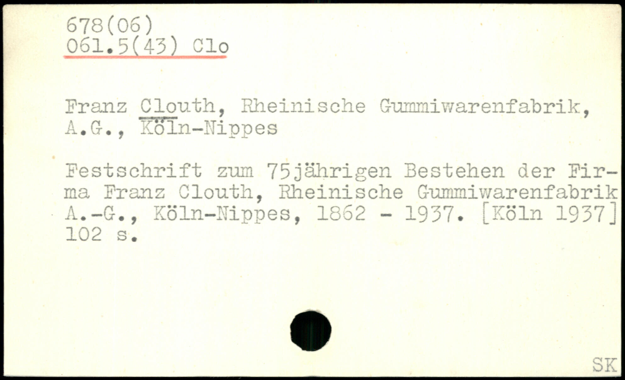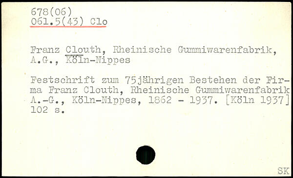 Franz Clouth, Rheinische Gummiwarenfabrik, A.G., Köln-Nippes Festschrift zum 75jährigen Bestehen der Firma Franz Clouth, Rheinische GummiWarenfabrik A.-