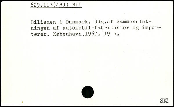 Bilismen i Danmark. Udg.af Sammenslutningen af automobil-fabrikanter og importører. København,1967.