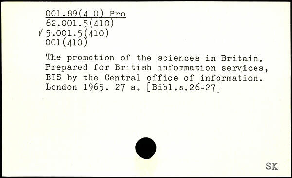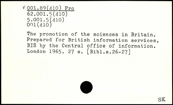 The promotion of the sciences in Britain. Prepared for British information services, BIS by the Central office of information.