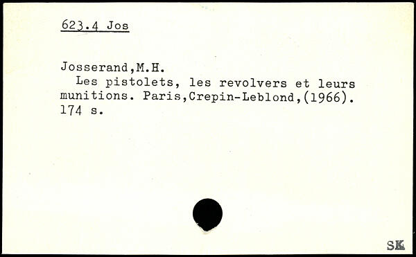 Les pistolets, les revolvers et leurs munitions. Paris,Crepin-Leblond,(1966).