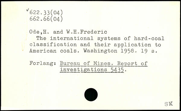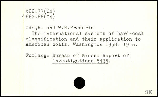 0de,H. and W,H,Frederic The international systems of hard-coal classification and their application to American coals