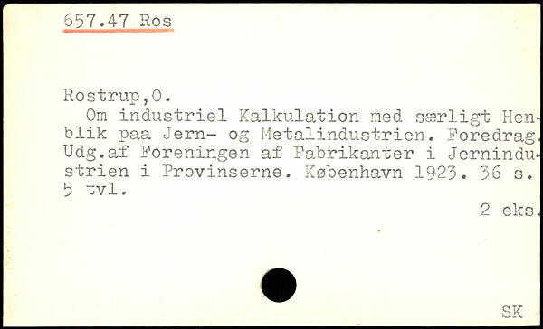 Om industriel Kalkulation med særligt Henblik paa Jern- og Metalindustrien. Poredrag, Udg.af Foreningen af Fabrikanter i Jernindustrien i Provinserne.