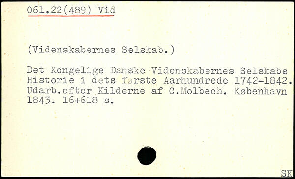 Det Kongelige Danske Videnskabernes Selskabs Historie i dets første Åarhundrede 1742-1842. Udarb.efter Kilderne af C.Molbech.