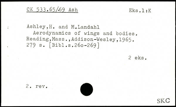 ; Ashley,H. and M.Landahl Aerodynamics of wings and bodies.
