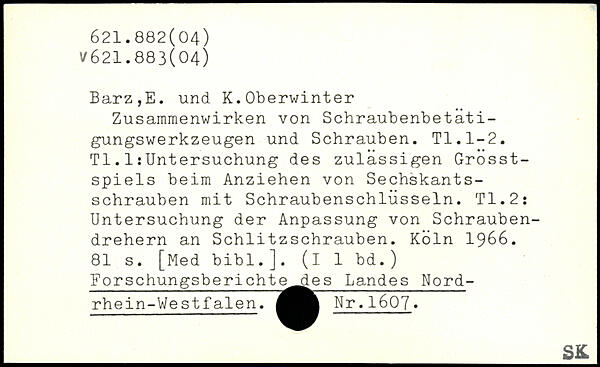 Zusammenwirken von Schraubenbetati-gungswerkzeugen und Schrauben. TI.1-2. TI.1:Untersuchung des zulässigen Grosst-spiels beim Anziehen von Sechskantsschrauben mit Schraubenschlüsseln. TI.2: Untersuchung der Anpassung von Schraubendrehern an Schlitzschrauben.