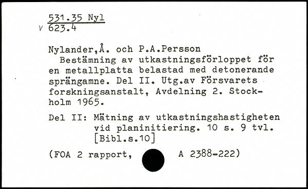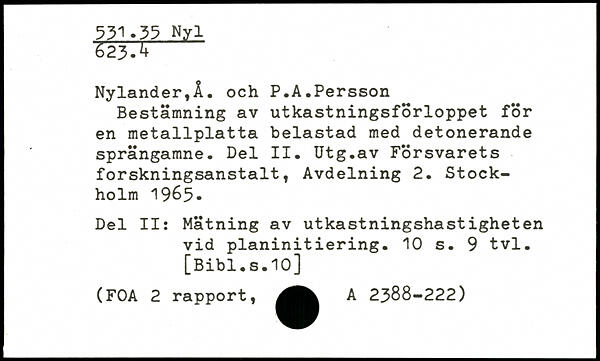 Bestämning av utkastningsförloppet för en metallplatta belastad med detonerande sprängämne. Del II. Utg.av Försvarets forskningsanstalt, Avdelning 2.