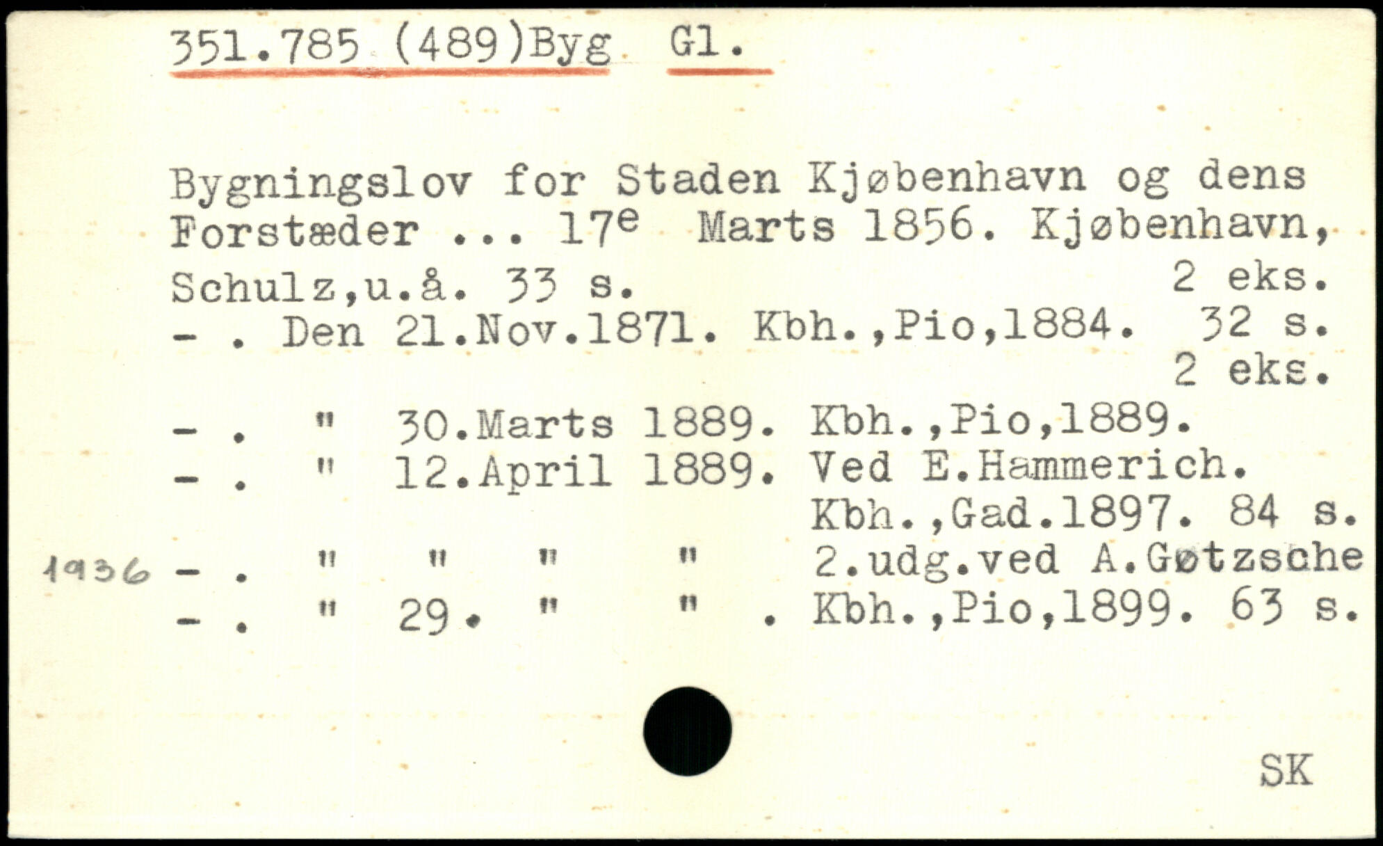 Bygningslov for Staden Kjøbenhavn og dens Forstæder ... 17e Marts 1856. Kjøbenhavn,. . Schulz,u.å.
