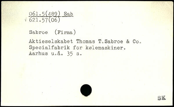 Aktieselskabet Thomas T0Sabroe & Co. Specialfabrik for kølemaskiner. Aarhus u.å.