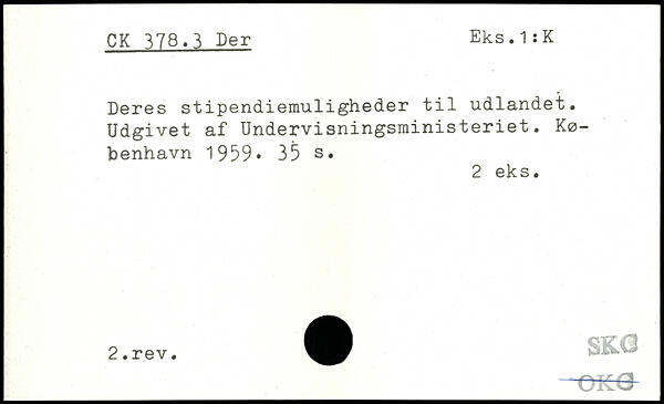 Deres stipendiemuligheder til udlandet. Udgivet af Undervisningsministeriet.