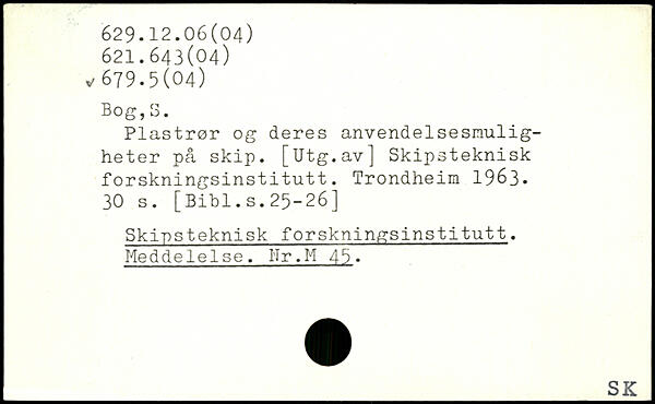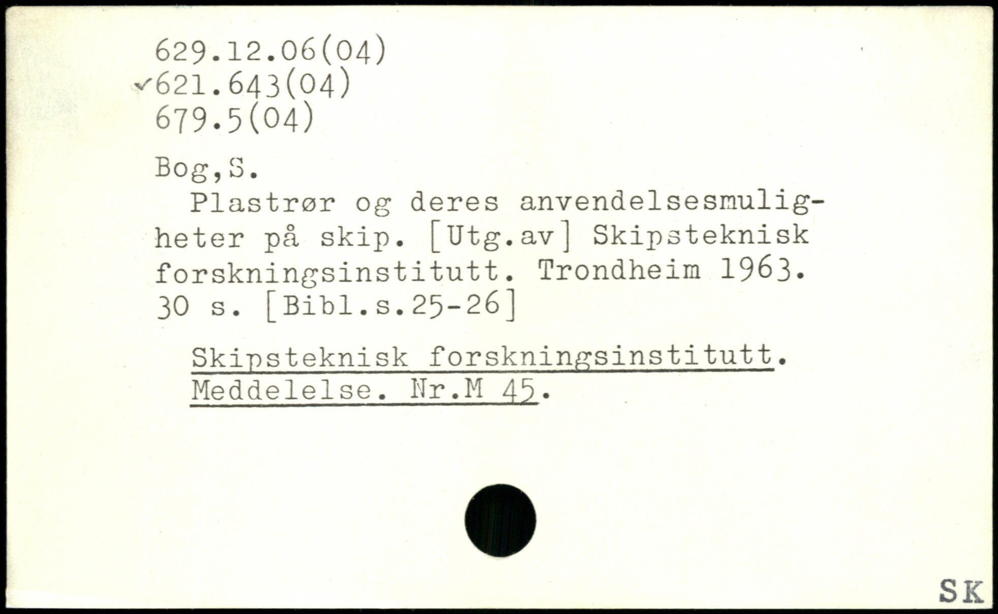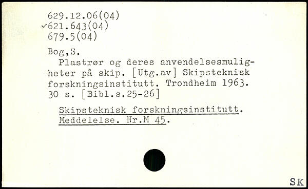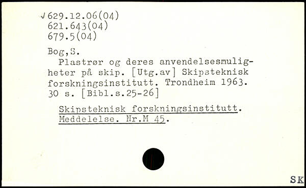 Plastrør og deres anvendelsesmulig-heter på skip. [Utg.av] Skipsteknisk forskningsinstitutt.