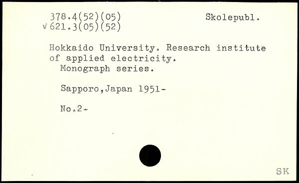 Hokkaido University. Research institute of applied electricity. Monograph series. Sapporo,Japan 1951- No <> 2-