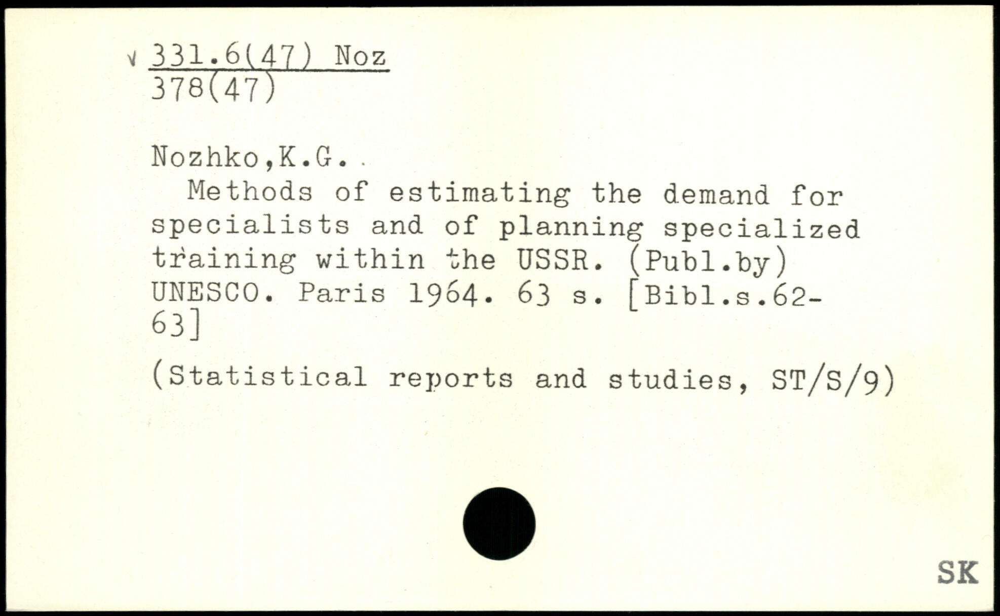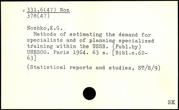 Methods of estimating the demand for specialists and of planning specialized training within the USSR. (