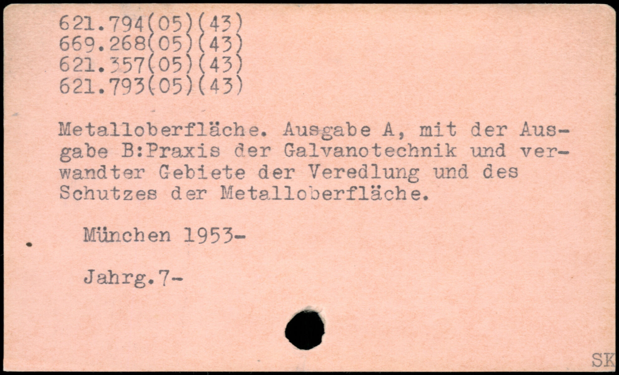 Metalloberfläche. Ausgabe A, mit der Ausgabe B:Praxis der G-alvanotechnik und verwandter Gebiete der Veredlung und des Schutzes der Metalloberfläche.