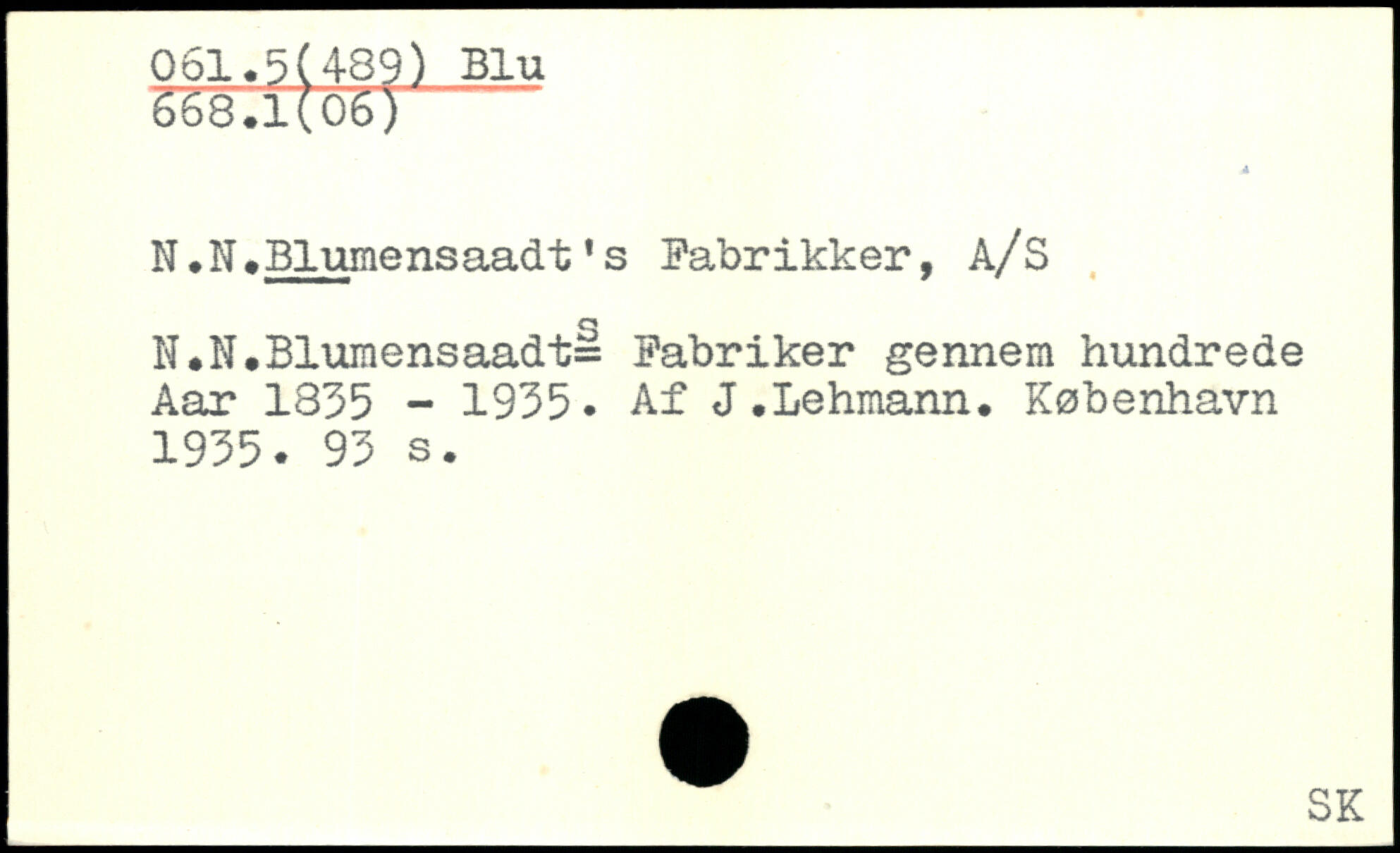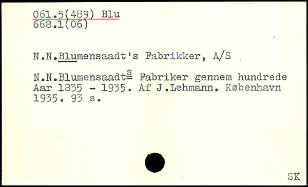 N.N.Blumensaadt's Fabrikker, A/S N.N.Blumensaadt= Fabriker gennem hundrede Aar 1355 - 1955. Af J.Lehmann.