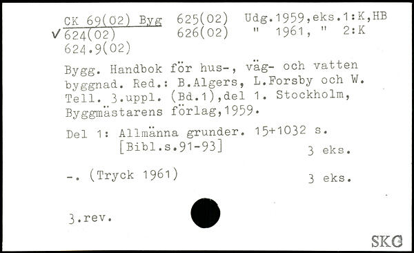Bygg. Handbok för hus-, väg- och vatten byggnad. Red.: B.Algers, L.Forsby och W. Tell.