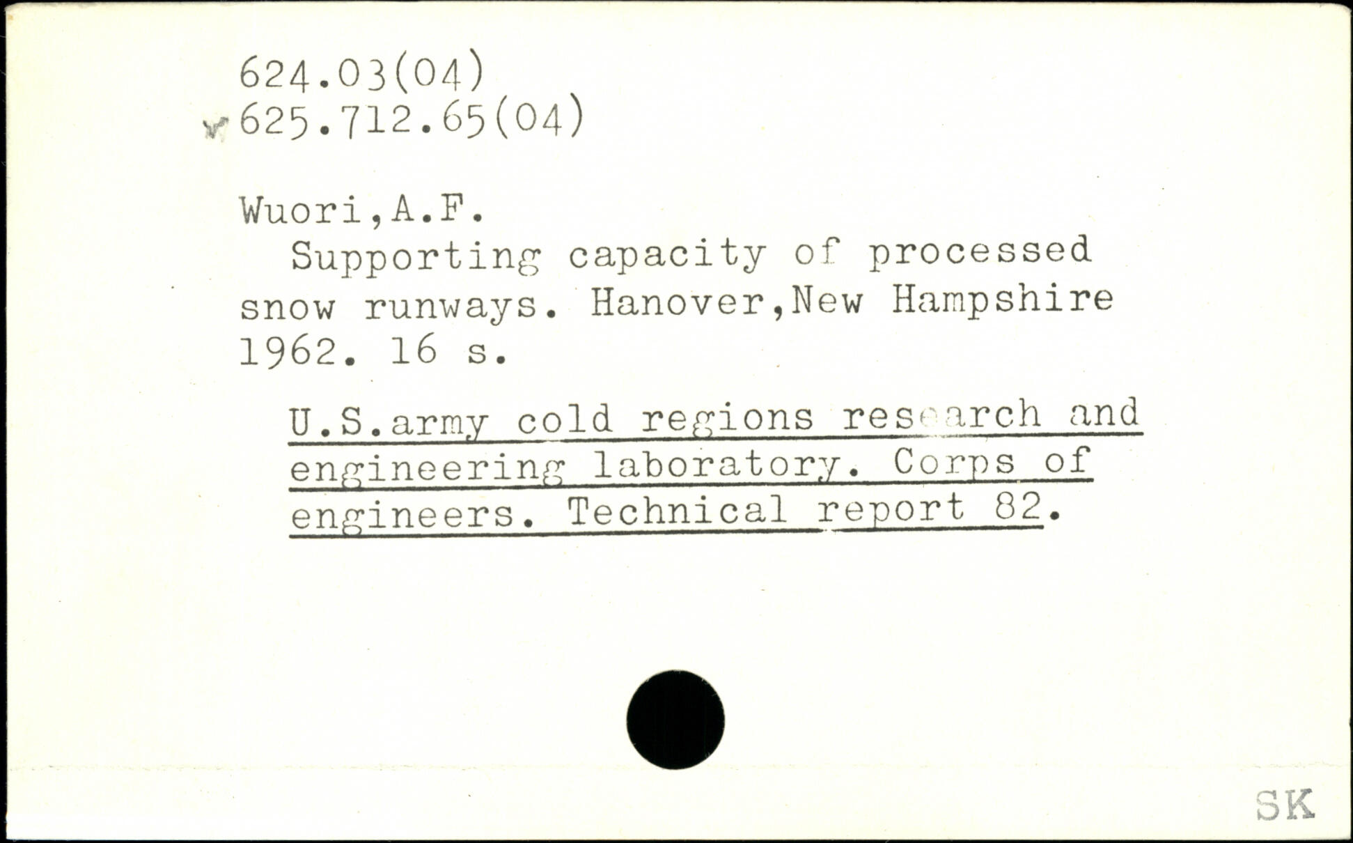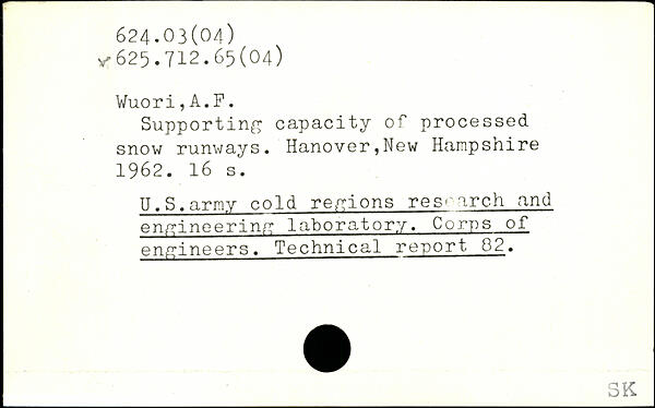Supporting capacity of processed snow runways. Hanover,New Hampshire 1962.