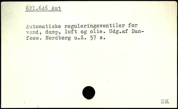 Automatiske reguleringsventiler for vand, damp, luft og olie. Udg.af Dan-foss. Nordborg u.å.