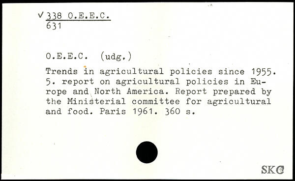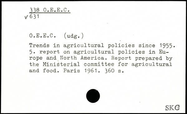 Trends in agricultural policies since 1955, 5. report on agricultural policies in Europe and North America. Report prepared by the Ministerial committee for agricultural and food.