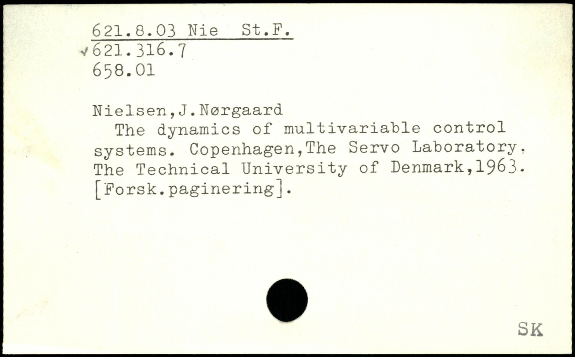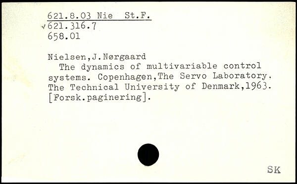 Nielsen,J.Nørgaard The dynamics of multivariable control systems. Copenhagen,The Servo Laboratory, The Technical University of Denmark,1963. [Forsk.paginering].
