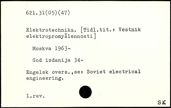 Elektrotechnik^. [Tidl.tit.s Vestnik elektropromyslennosti]