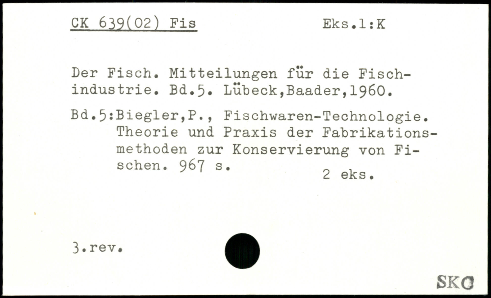 Der Fisch. Mitteilungen für die Fischindustrie.