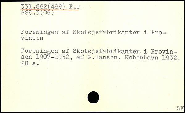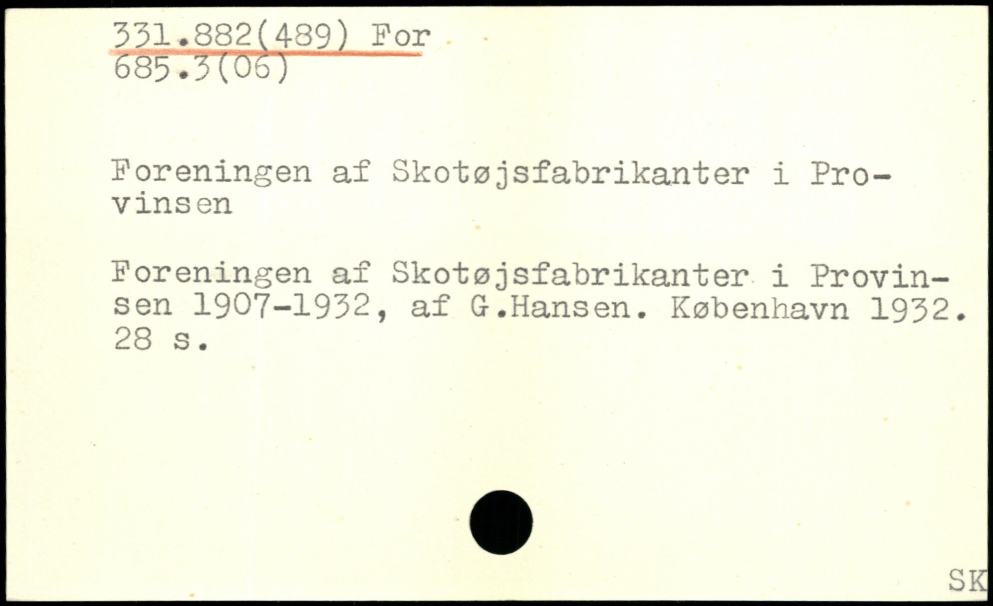 Foreningen af Skotøjsfabrikanter i Provinsen Poreningen af Skotøjsfabrikanter i Provinsen 1907-1932, af G-. Hans en.