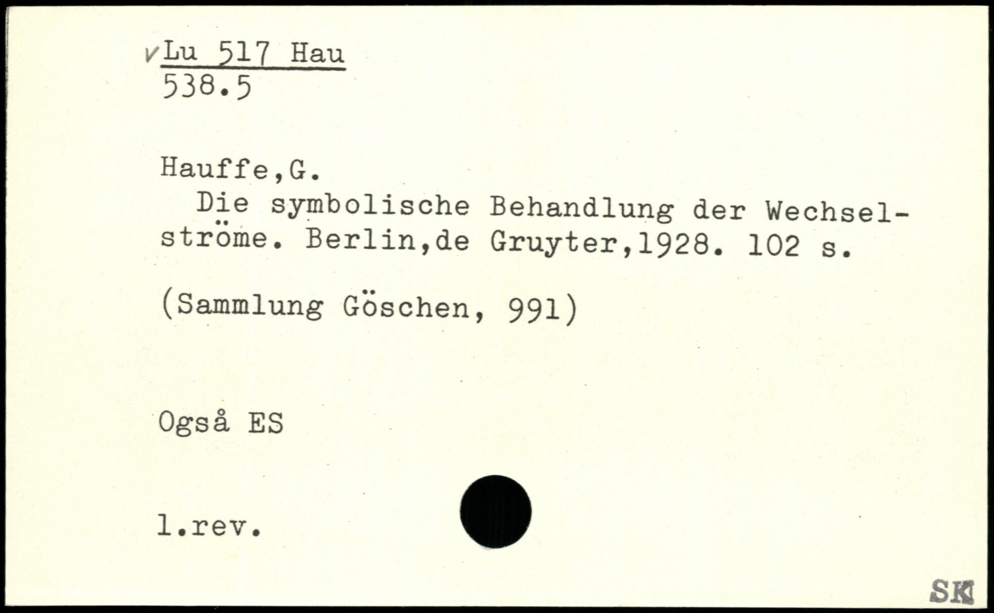 Die symbolische Behandlung der Wechselströme. Berlin,de Gruyter,1928.