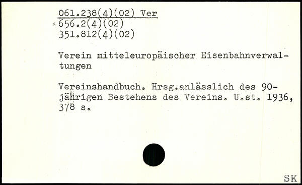 Verein mitteleuropäischer Eisenbahnverwaltungen Vereinshandbuch. Hrsg.anlässlich des 90-jäiirigen Bestehens des Vereins. TT. st. 1936