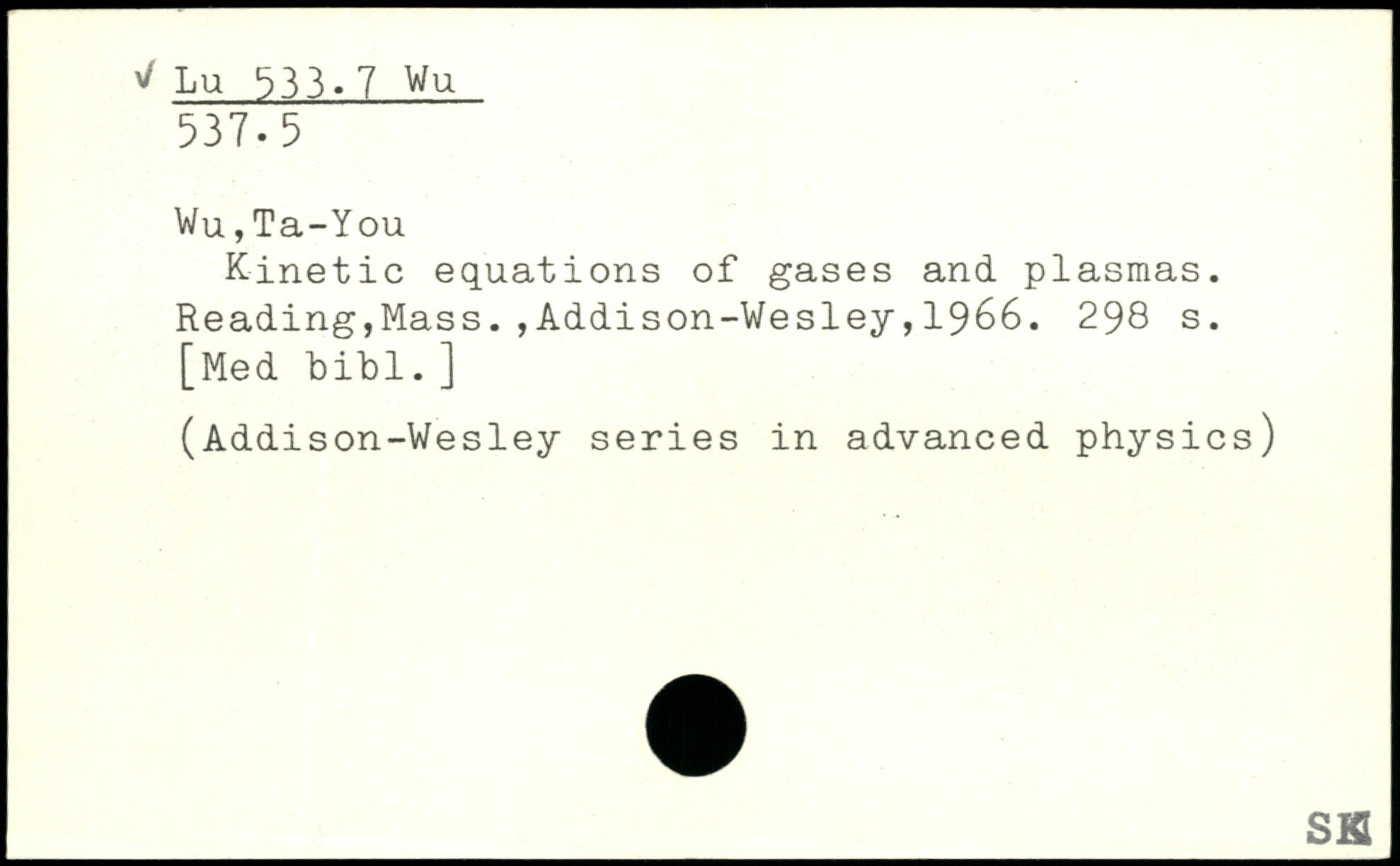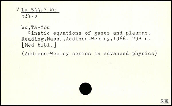 Wu,Ta-You Kinetic equations of gases and plasmas.