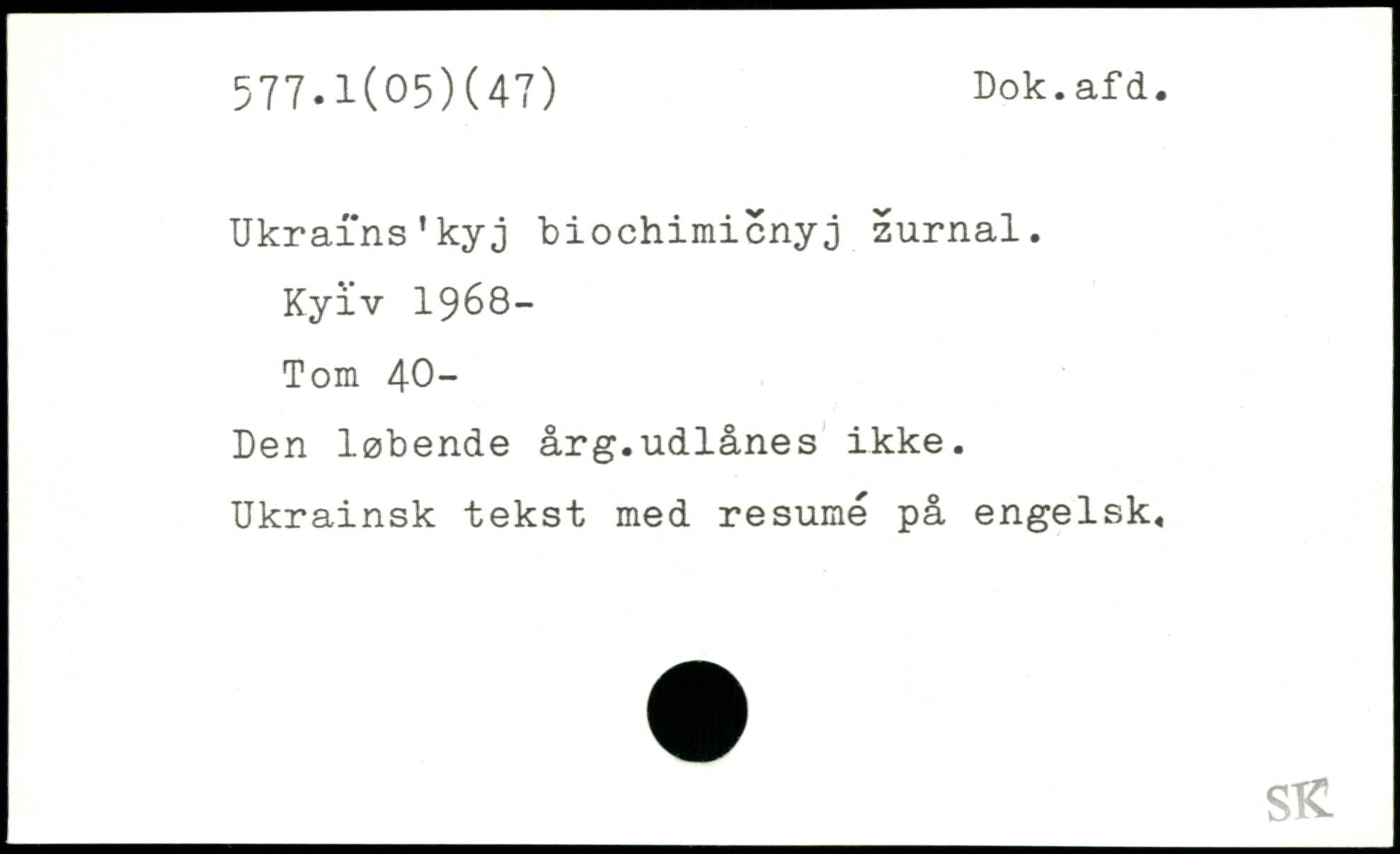 Ukrains’kyj biochimicnyø zurnal. Kyiv 1968-Tom 40- Den løbende årg.udlånes ikke. Ukrainsk tekst med resumé på engelsk