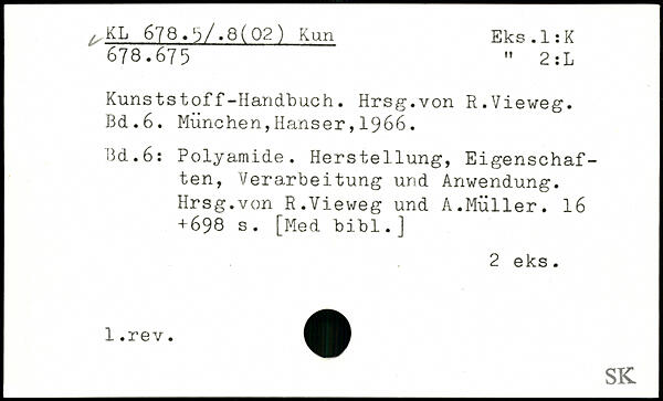 Kunststoff-Handbuch. Hrsg.von R.Vieweg.