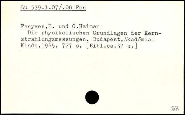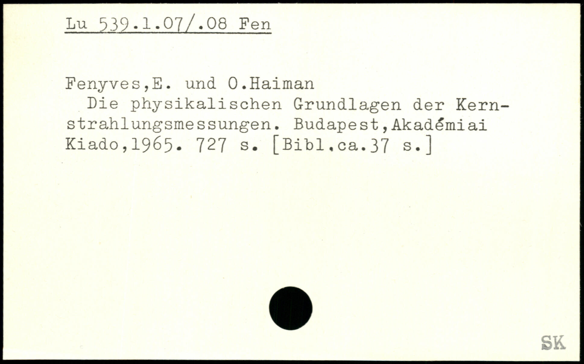 Fenyves,E. und 0.Kaiman Die physikalischen Grundlagen der Kernstrahlungsmessungen.