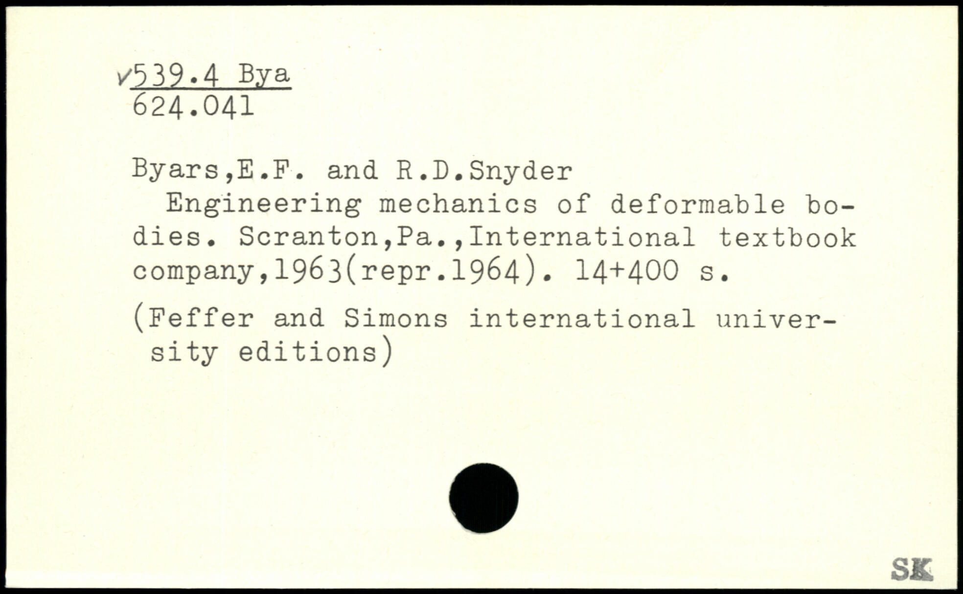 Engineering mechanics of deformable bodies.