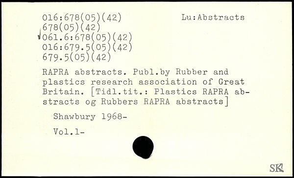 UDK: 016:678(05)(42), 678(05)(42), 016:679.5(05)(42), 679.5(05)(42)