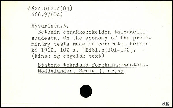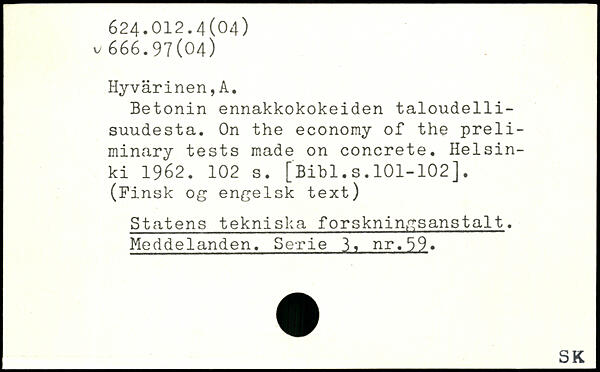 Betonin ennakkokokeiden taloudelli-suudesta. On the economy of the preliminary tests made on concrete.