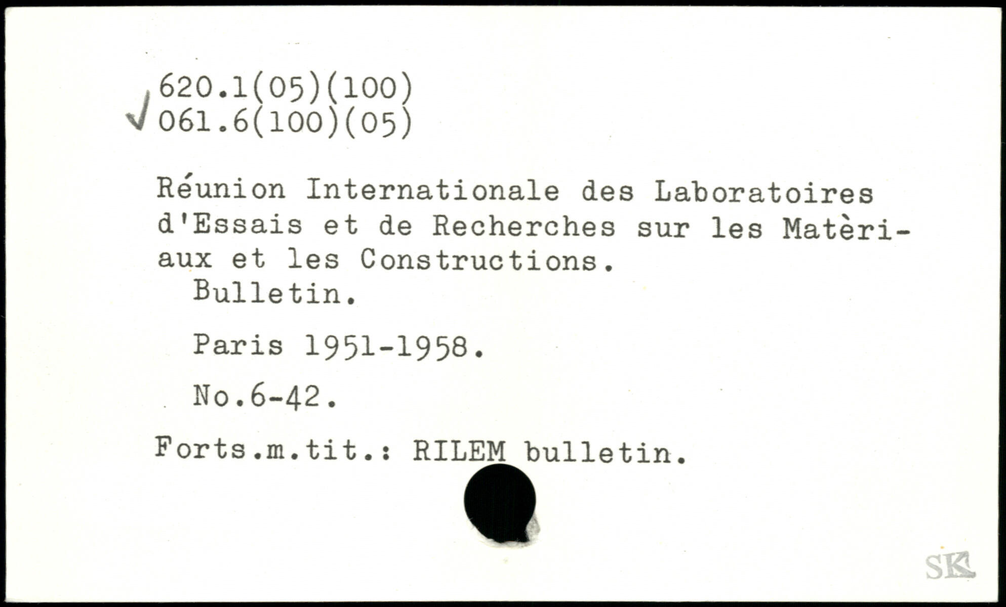 Reunion Internationale des Laboratoires d’Essais et de Recherches sur les Matériaux et les Constructions. Bulletin.