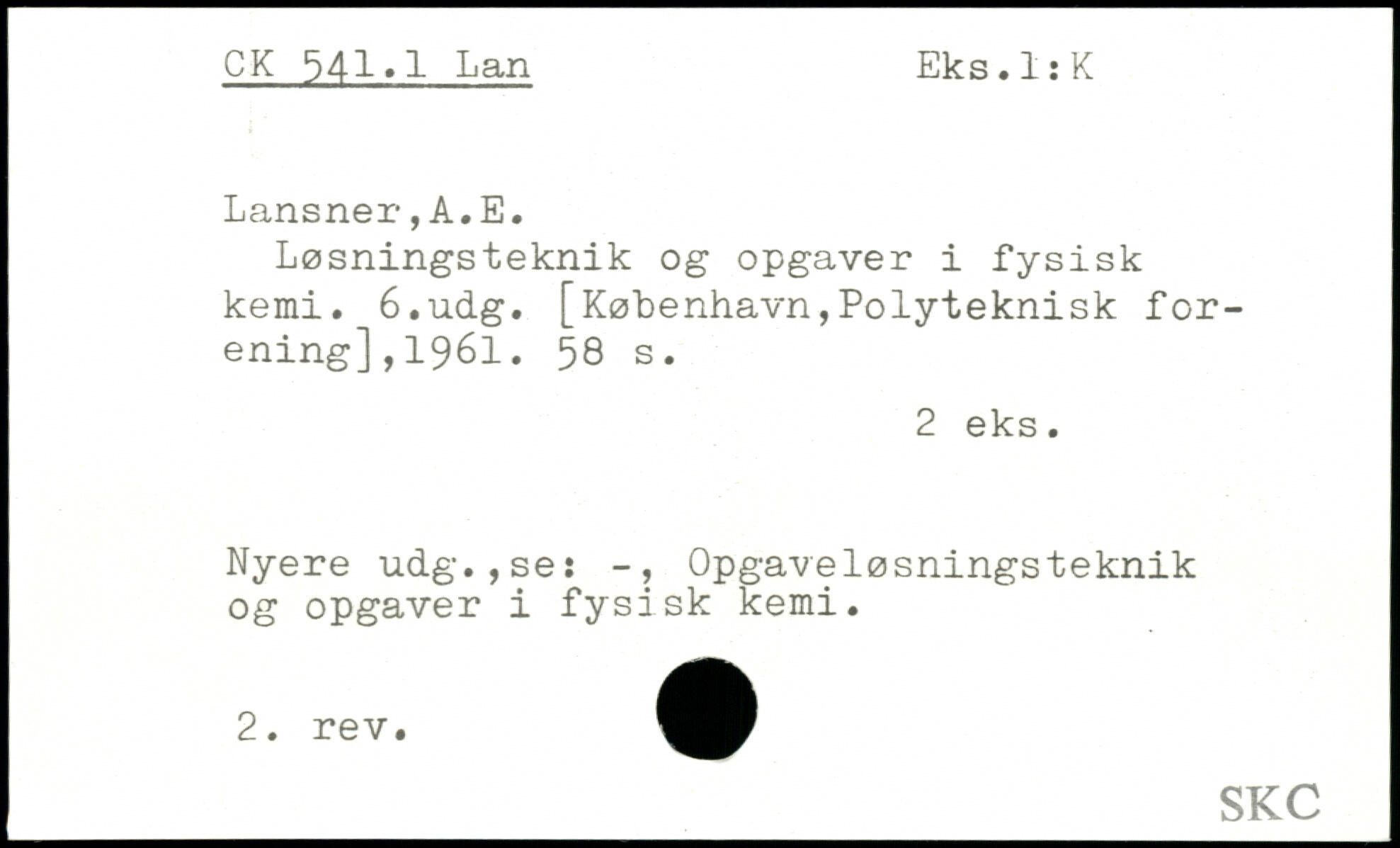 Løsningsteknik og opgaver i fysisk kemi.