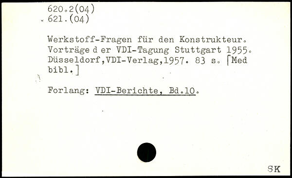 Werkstoff-Fragen für den Konstrukteur, Vorträge der VDI-Tagung