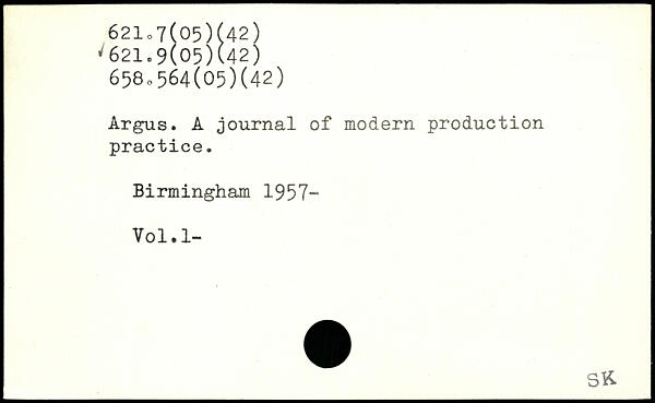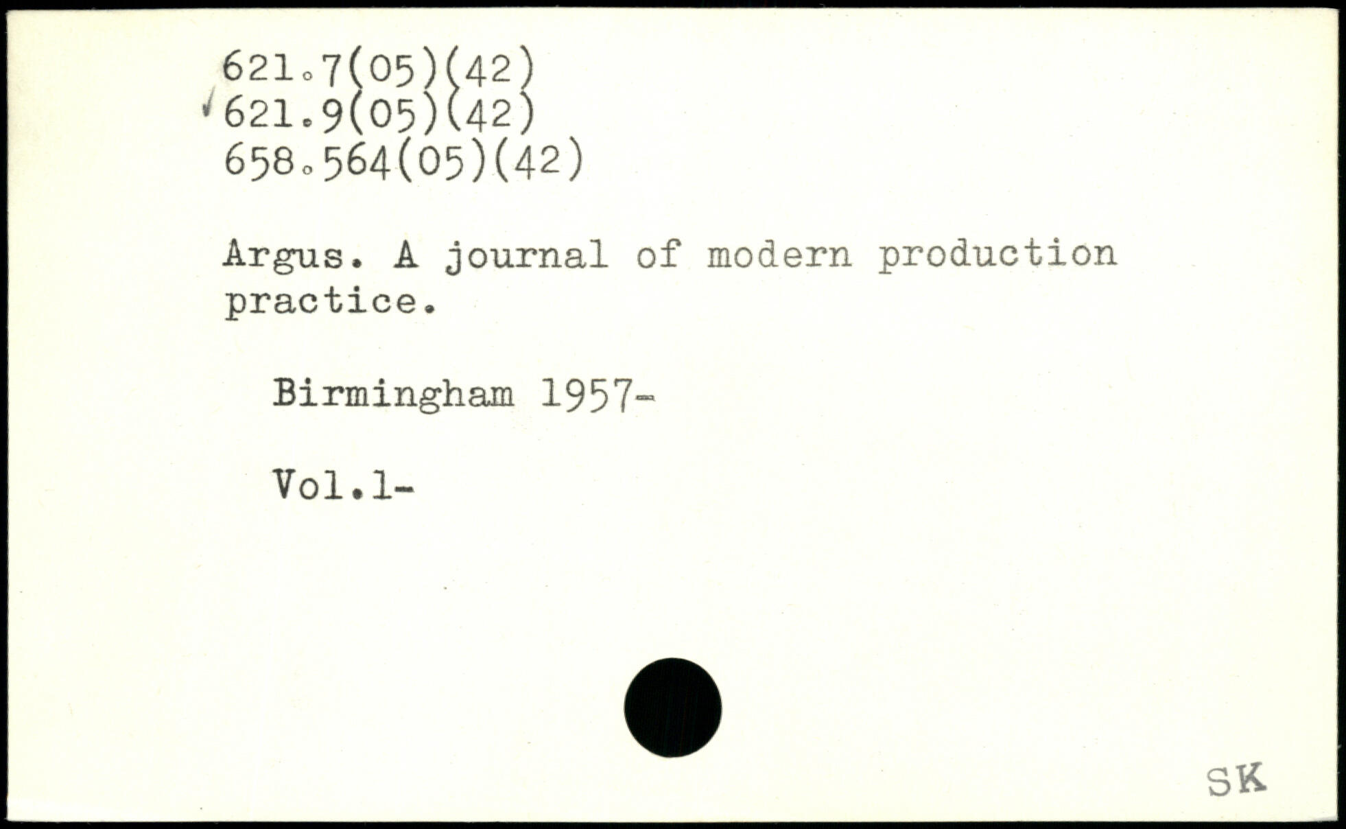 Argus. A journal of modem production practice. Birmingham 1957- Vol.l-