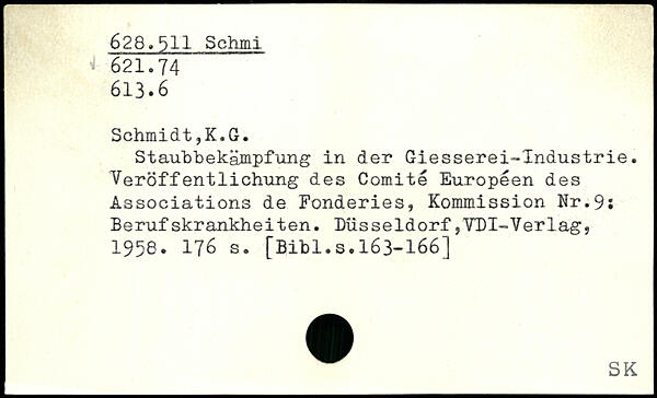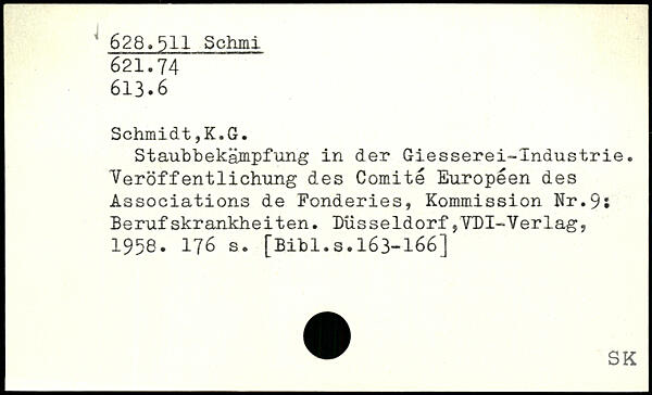 Staubbekämpfung in der Giesserei-lndustrie. Veröffentlichung des Comité Européen des Associations de Fonderies, Kommission Nr.9; Berufskrankheiten.
