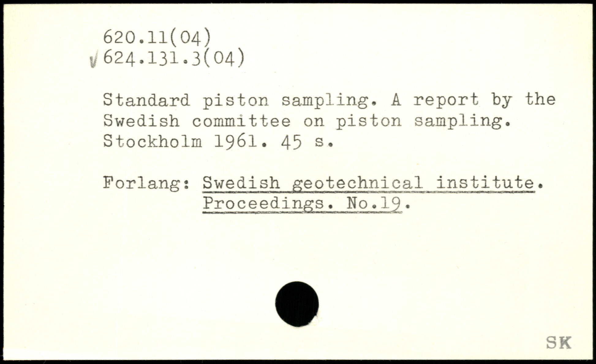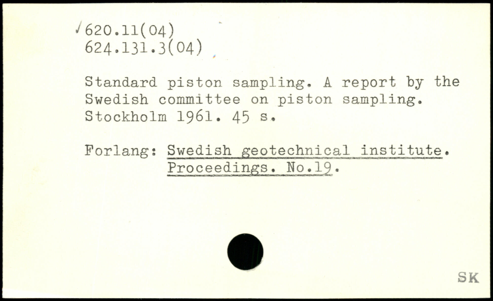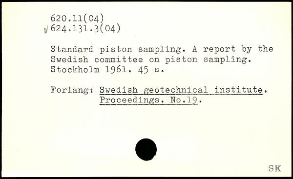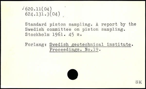 Standard piston sampling. A report by the Swedish committee on piston sampling.