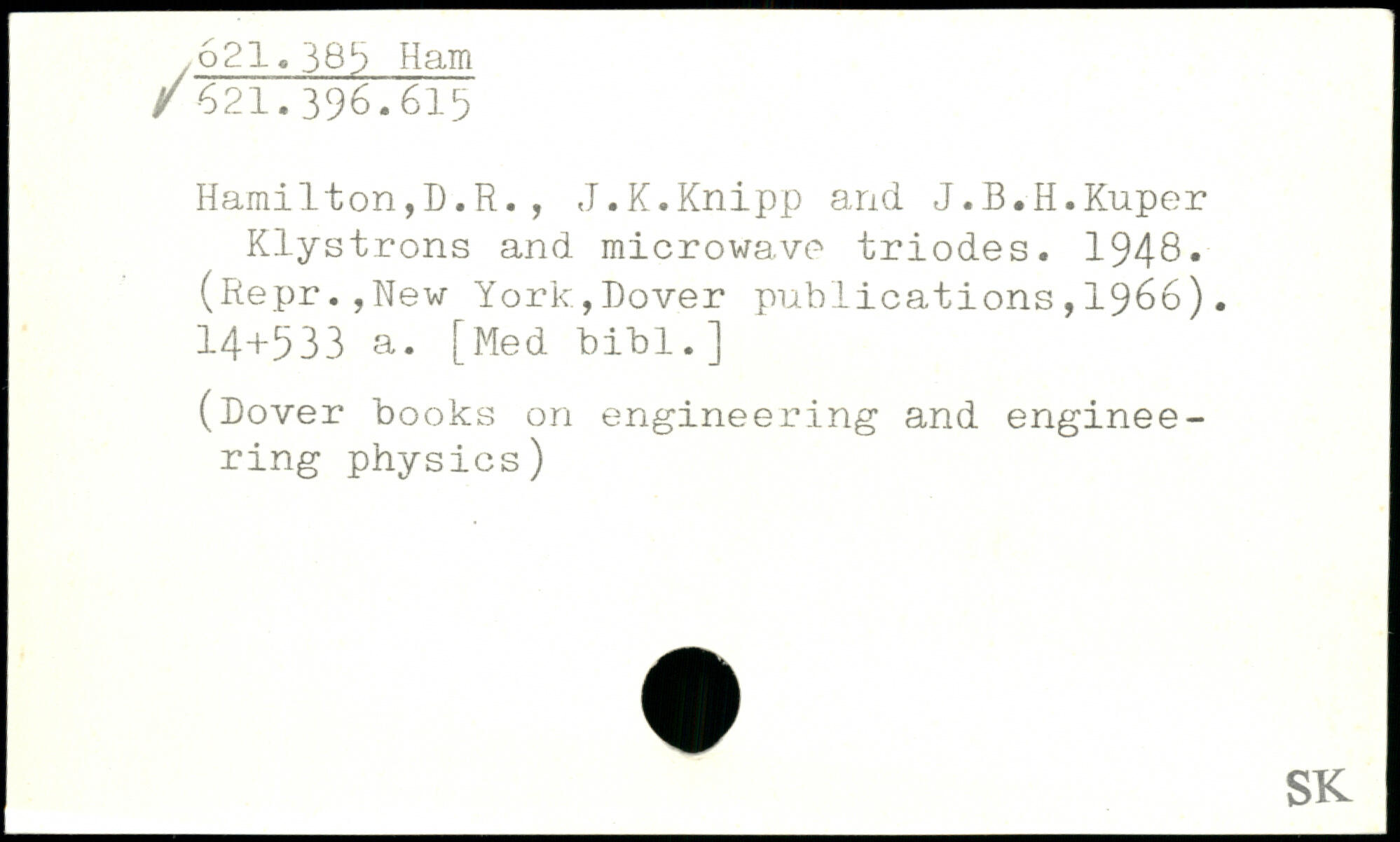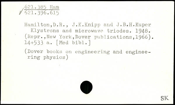 Hamilton,D.R., J.K.Knipp and J.B.H.Kuper Klystrons and microwave triodes. 1948. (