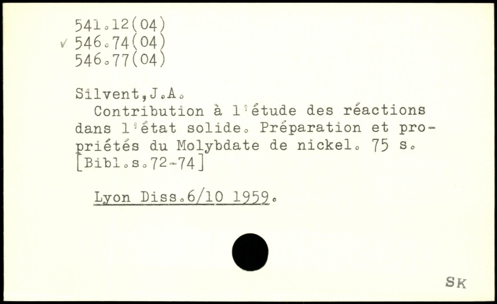 Contribution à 1■étude des reactions dans Is état solide., Preparation et pro™ priétés du Molybdate de nickelo