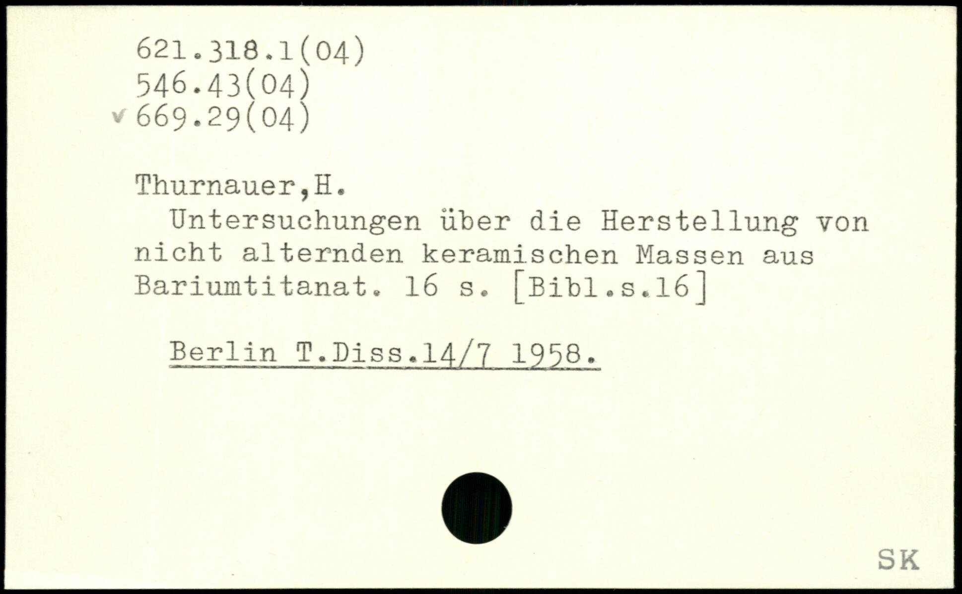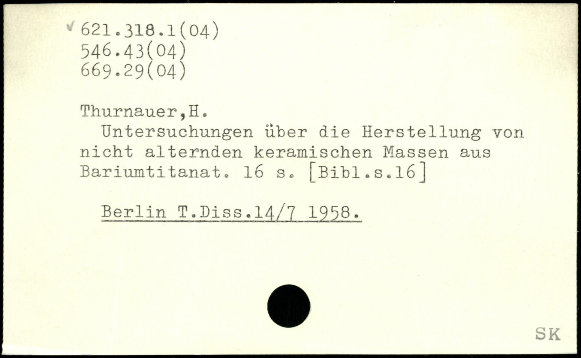 Untersuchungen über die Herstellung von nicht alternden keramischen Massen aus Bariumtitanat.