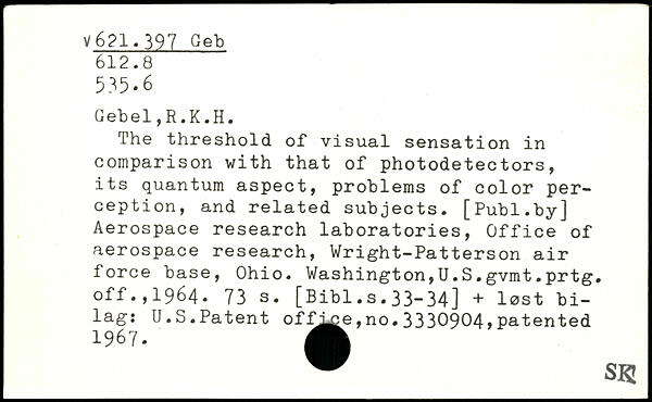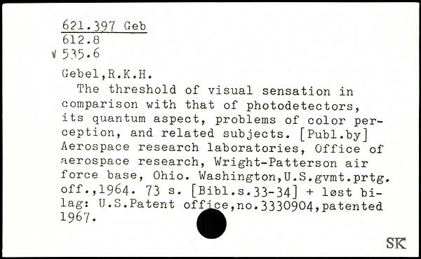 The threshold of visual sensation in comparison with that of photodetectors, its quantum aspect, problems of color perception, and related subjects.