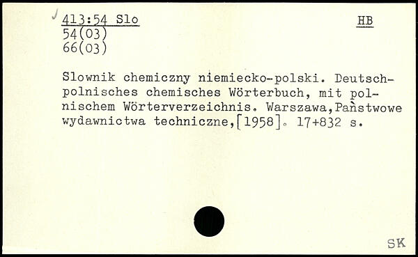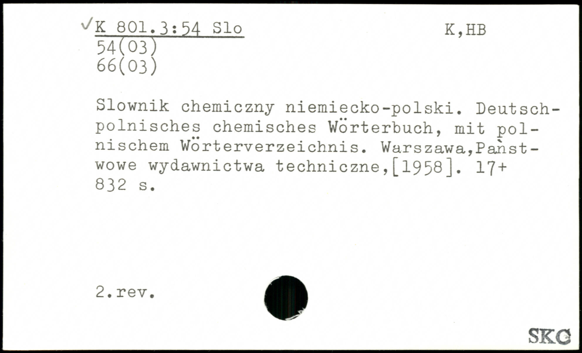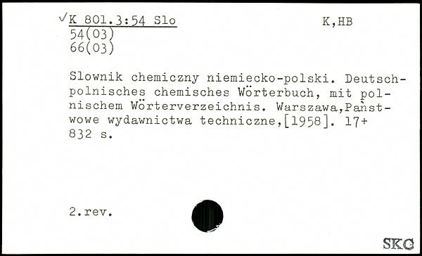 Slownik chemiczny niemiecko-polski. Deutschpolnisches chemisches Wörterbuch, mit polnischem Wörterverzeichnis.
