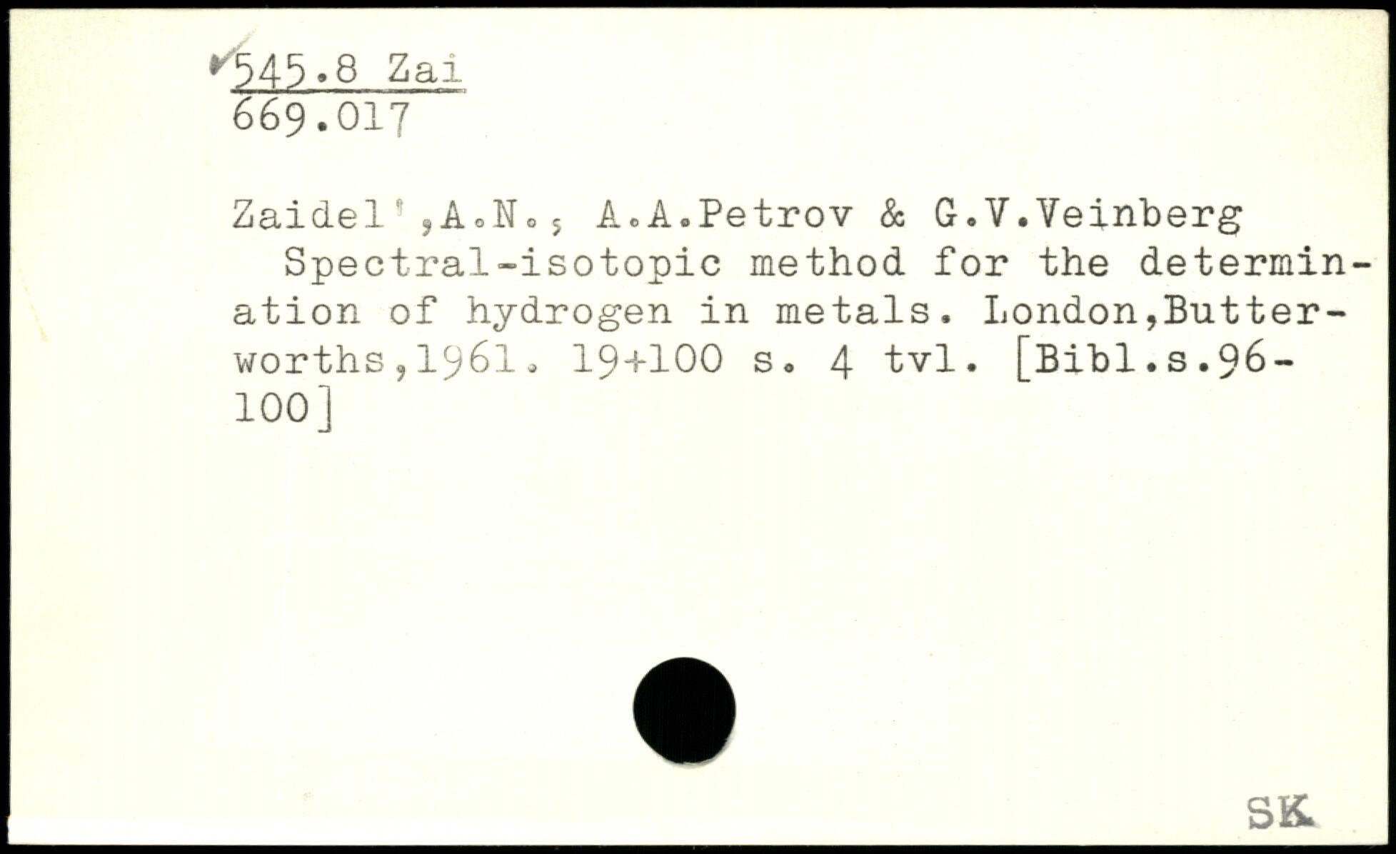 Spectral-isotopic method for the determination of hydrogen in metals.