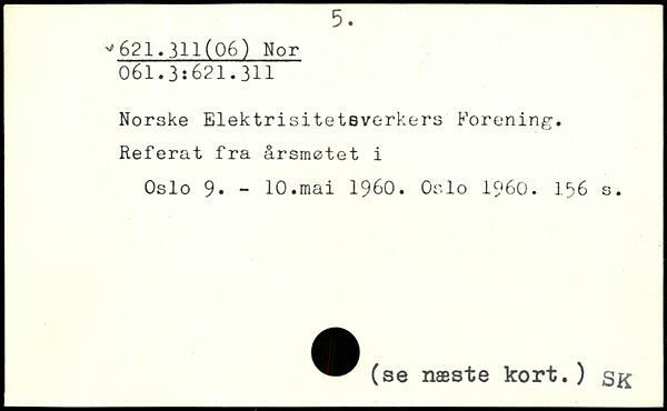 Norske Elektrisiteteverkers Forening. Referat fra årsmøtet i Oslo 9. - 10.mai 1960. Oslo 1960.